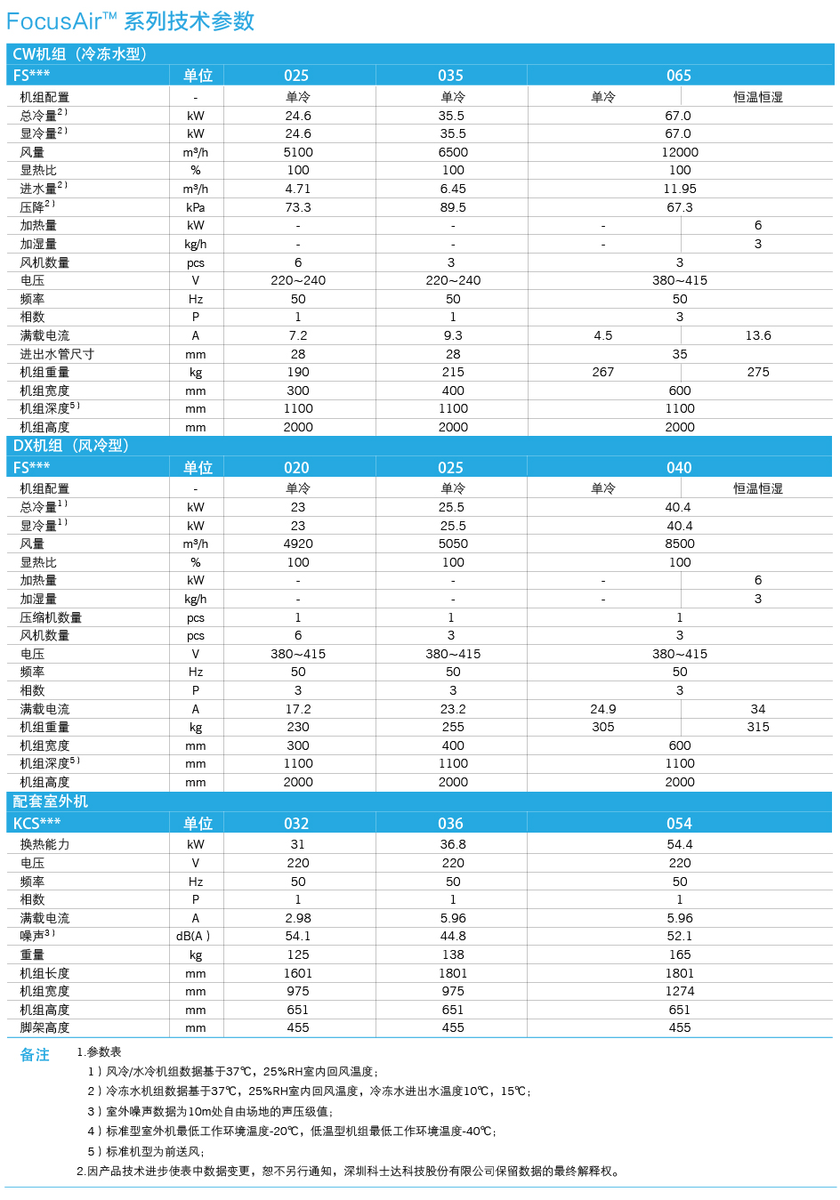 FocusAirTM系列可提供3種不同的制冷系統(tǒng) (A風(fēng)冷型, W水冷型,C冷凍水型)